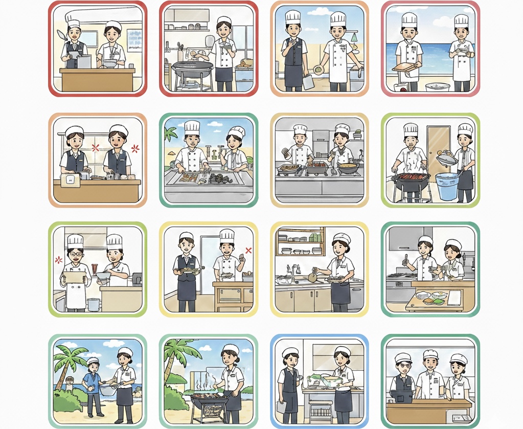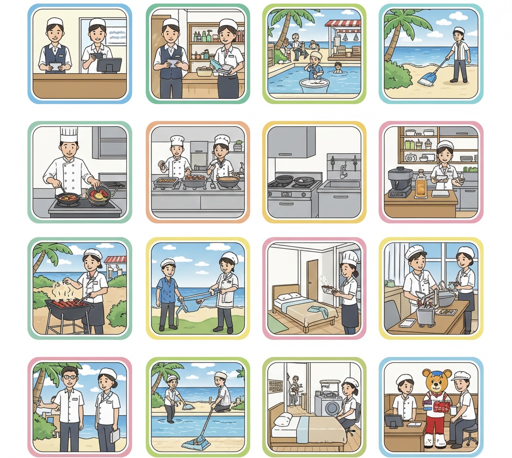 リゾートバイトの仕事のほとんどは、専門知識ゼロからでも「数日」でマスターできるように徹底的にシステム化されています。